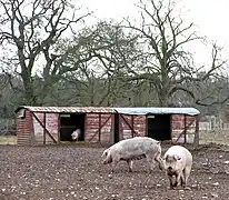 | A building for raising domestic pigs. |