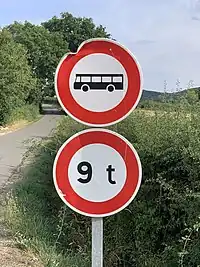 | Specifies no legal access for public transport buses, OR that buses do not stop here. |