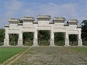 | A traditional style of Chinese architectural arch or gateway structure. |