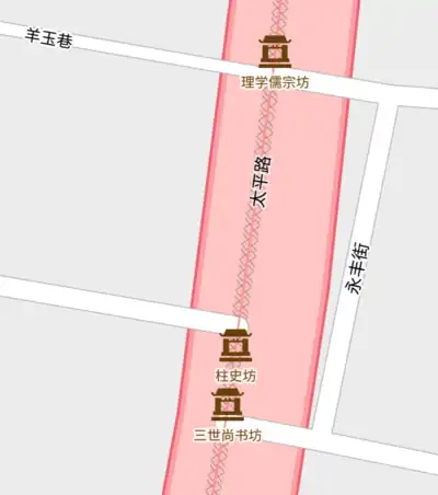 A paifang(Chinese: 牌坊, sometimes also 牌楼/牌樓) is a traditional style of Chinese architectural arch or gateway structure. Paifangs come in a number of forms. One form involves placing wooden pillars onto stone bases, which are bound together with wooden beams. This type of paifang is always beautifully decorated, with the pillars usually painted in red, the beams decorated with intricate designs and Chinese calligraphy, and the roof covered with coloured tiles, complete with mythical beasts. Another form of paifang is in the form of true archways made of stone or bricks; the walls may be painted, or decorated with coloured tiles; the top of the archways are decorated like their wooden counterparts.