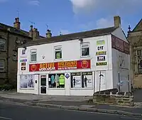 Indicates that the shop sells working clothes (e.g. uniforms, protective suits, lab coats).