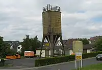 The content of a silo is salt. These types of silos, usually made of metal, are typically used for winter road maintenance by snowploughs, which is why they are often located near main roads.