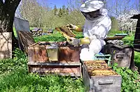An apiarist at work -