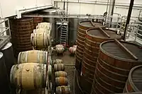 winery is a building or property that produces wine, or a business involved in the production of wine, such as a wine company. Some wine companies own many wineries. Besides wine making equipment, larger wineries may also feature warehouses, bottling lines, laboratories, and large expanses of tanks known as tank farms.