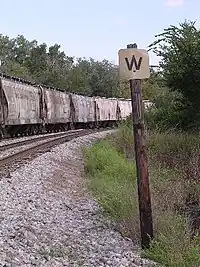 This tag indicates that a train must blow its horn (whistle) at a specific railroad crossing in a country where railroad rules do not generally require horn usage.