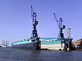Floating docks are usually a large floating structure with the purpose to lift a vessel out of the water for maintenance or inspections of the wet surface of the hull.