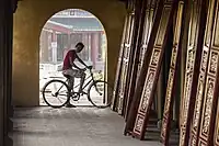 | Denotes a lack of door, an open entrance, to a building or room |