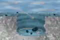 Giant's kettle is a hole created under a glacier by a stream with the rotation of one or more stones in bedrock. If the stone is big enough and the hole deep enough when the glacier is gone, the stream can continue to dig the hole and to polish the stone. The kettle and stones are very regular, looking like eggs in a perfect round nest.