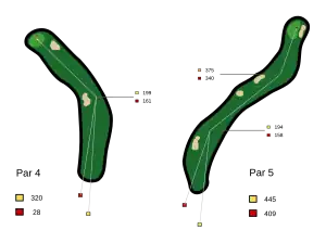 | Typical doglegs. Left: "dogleg left". Right: "double dogleg" |
