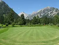 | Area of short grass on smooth ground surrounding a golf pin (hole), short for 'putting green'. |
