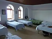 An albergues is a hostel for pilgrims. A standard albergue has one or several dormitory rooms with bunk beds (few have normal beds), a shared ablution complex, a kitchen, and a common area.[1]