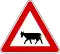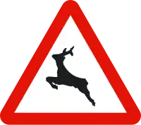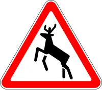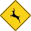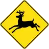 | Signed place where animals are known to appear unexpectedly, presenting a collision hazard to motorists. |
