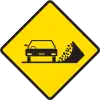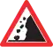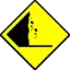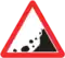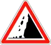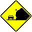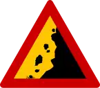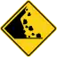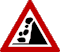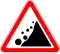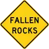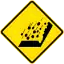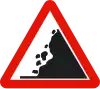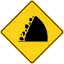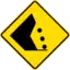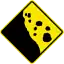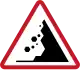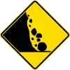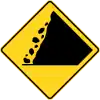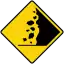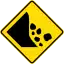 | A signed area in which rocks, dirt, or other natural materials may fall unexpectedly from cliffs above, or may have fallen, presenting a hazard. |