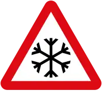 The tables below show what ice hazard signage looks like in various countries. Note that some countries use the same sign symbology that's in use for hazard=slippery, but with an additional plate to indicate ice and/or snow.