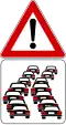| A signed area which frequently experiences a queue of cars backed up on the roadway |