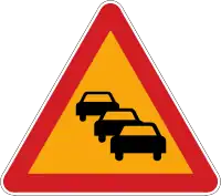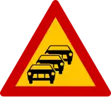 If the queues likely hazard is signed for certain times of the day (for example, rush hour), a conditional restrictions can be applied as well, such as hazard:conditional=queues_likely @ (Mo-Fr 06:00-08:00).