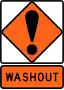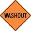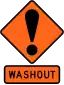 washout is a section of road which has been breached by flooding, presenting a risk to motorists.