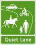 The quiet lane is the rural equivalent, generally minor country lanes. Horse traffic may also occur here. Quiet lane legislation only applies to England and Wales. |
