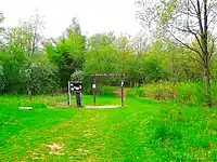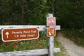 A trailhead is a designated or customary place where people can stop or start a trip on one or more trails or routes. Its position may be marked by a shelter, pole, special design, flag, banner, or parking area. Often there will be a board with a name and a reference to an operator. Parking space will usually be available. Some trailheads are unmarked and known only by word-of-mouth or from information provided on a list or website.