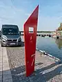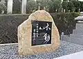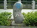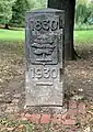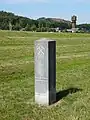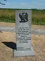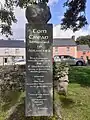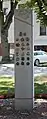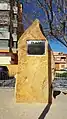 | A stone or wooden slab, erected vertically, with informative text or images. |