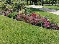 | An area covered with flowerbed. |
