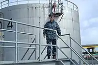 | A military storage facility, often for fuel or equipment |