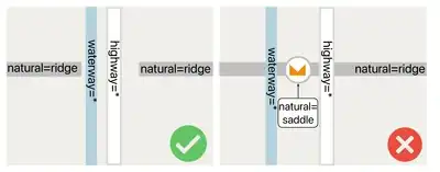 natural=ridgeways in mountainous areas. However, a whole drainage divide should not be mapped as a singlenatural=ridgeway. The individual ridges should stop at flat areas such as saddles and plateaus. If there is aname=*, it should be the name of the local ridge, not the name of a drainage divide or mountain range.
