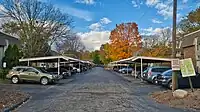 carports. In this type of parking area, each parking space is equipped with a shelter providing minimal protection from the weather (generally a roof and possibly a single wall).