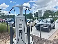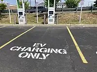 | A parking space designated for use while charging electric vehicles. |