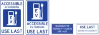 Many charging stations have designated spaces close to the charge points customers are expected to use. In some cases, this restriction is legally enforceable, in others it is a suggestion or "last resort" space. In the