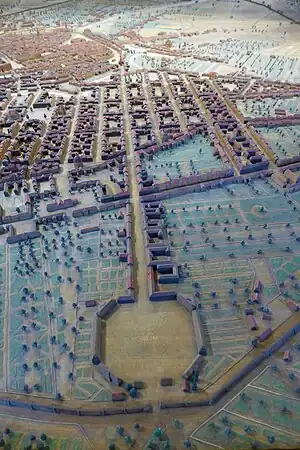 - Potsdamer Platz (external), named after the former Potsdam Gate, and Leipziger Platz (internal, octogonal and visible in the model)