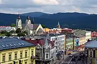 Use place=town to identify an important urban centre that is larger than a place=village, smaller than a place=city, and not a place=suburb. Towns normally have a good range of shops and facilities which are used by people from nearby villages.