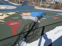 | A map painted on a paved surface at a playground or school to teach geography to children |
