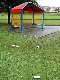 Use the tag playground=teenshelter on a node or draw as an area along the structure outline.