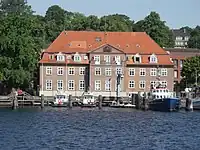 Draw the outline of the building or the area occupied by the naval, maritime or river police station. This typically includes a police station and a pier where police boats can dock. In maritime ports this may be bigger facilities for the coast guard.