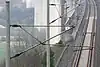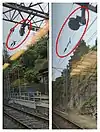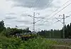 at the catenary mast feeding cables are led from the ground to the top to feed the over head contact line |