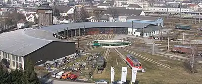 railway=traverser- Parallel sliding section of the trackrailway=turntable- Railway turntablebuilding=roundhouse- A roundhouse building