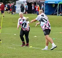 Walking Rugby is one of England Rugby’s non-contact formats of the game. There is no tackling involved, instead a touch on the armpit or below is used. Played on a half pitch, participants must be walking at all times. In its most common form, a game is played between two teams of 7 players each, using an oval-shaped ball on a rectangular field called a pitch..