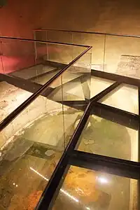 Glass used as a surface. It is unusual, but happens in some archaeological sites, some caves, for stylistic purposes and so on.