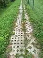 A sort of permeable / porous paving using regular cell structure, where the voids in this structure enable rainwater to drain into the ground and the structure itself increases the load bearing capability. Often used for parking lots or infrequently used ways, like emergency or utility access roads or areas.