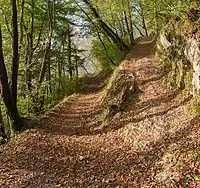 No special surface, the ground itself has marks of human or animal usage. This value gives only a rough description; if possible, use a more precise value such as