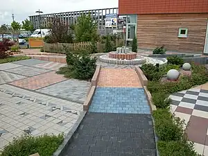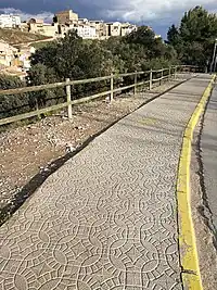 | The surface of the object is paved with ceramic tiles. |