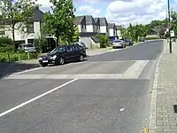 Designed as a long speed hump with a flat section in the middle.