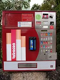 A cigarette machine is a vending machine that dispenses packets of cigarettes.