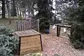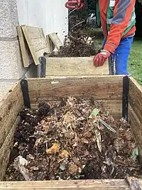 | A pedestrian garbage can that accepts organic waste or a shared composter. |