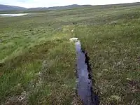 - These are narrow and shallow drainage channels dug in peat, with active drainage flow in the spring to remove standing water on grass. Too small for