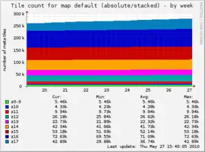 Alternatively you can copy and edit the script, for instance if you want to change the zoom levels for which statistics should be reported. The standard config will create one value for zoom levels 0 to 9 together and one value for each zoom level from 10 to 17. (Except the render-time and requests-rendered scripts which will use zoom level ranges 0-9, 10-12, 13-15, and 16-17.)