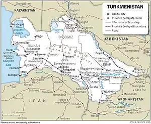 - Административное деление Туркмении (Russian Wikipedia: Administrative Division of Turkmenia CAUTION: Appears not to have been updated since 2015, so is out of date.)