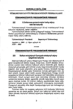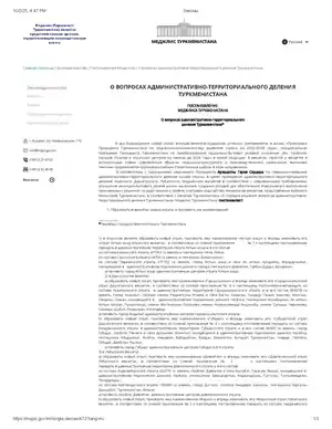 - ↑ 3.00 3.01 3.02 3.03 3.04 3.05 3.06 3.07 3.08 3.09 3.10 3.11 3.12 3.13 3.14 3.15 3.16 “О вопросах административно-территориального деления Туркменистана ПОСТАНОВЛЕНИЕ МЕДЖЛИСА ТУРКМЕНИСТАНА” (in Russian). Mejlis. 20 September 2025.Transferred 20 September 2025 by parliamentary decree.
