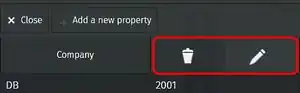 Hover with the mouse over a property name reveals buttons.